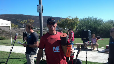 It was odd to have the competition for the 3 hour endurance challenge leave with out me, but 5 minutes late we were off. A high school guy took the lead at the start with me and a very fit looking dude right behind me. My legs felt very flat and tired going up the steep hill at the start after a solid week of training and quite a bit of bike touring up the southern California coast. I kept in contact and we all 3 went up the first mile together. Shortly after a mile I took the lead and the guy behind me followed. Things were fast and everyone was working hard, there were some fast and talented dudes running this trail race. By the top of Black Mountain at the turn around I had maybe a 20ish second gap on second place. I gained some confidence and was feeling warmed up cruising back down the steep and sometimes technical trail down to the finish. I was drinking my Vitargo in my hand water bottle keeping my energy levels high.